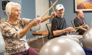 Stay active and have fun with Chair Drumming! Chair Drumming is a low-impact exercise that offers many health benefits. It promotes cardiovascular health and enhances mood, reduces stress, and increases range of motion and mobility.